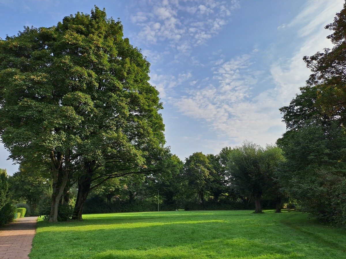 Direkt vor der Haustür erstreckt sich ein schöner, ruhiger Park, der mit seinen grünen Wiesen und schattenspendenden Bäumen zu entspannenden Spaziergängen und erholsamen Momenten in der Natur einlädt. Hier können Sie die frische Luft genießen und dem Alltagsstress entfliehen.